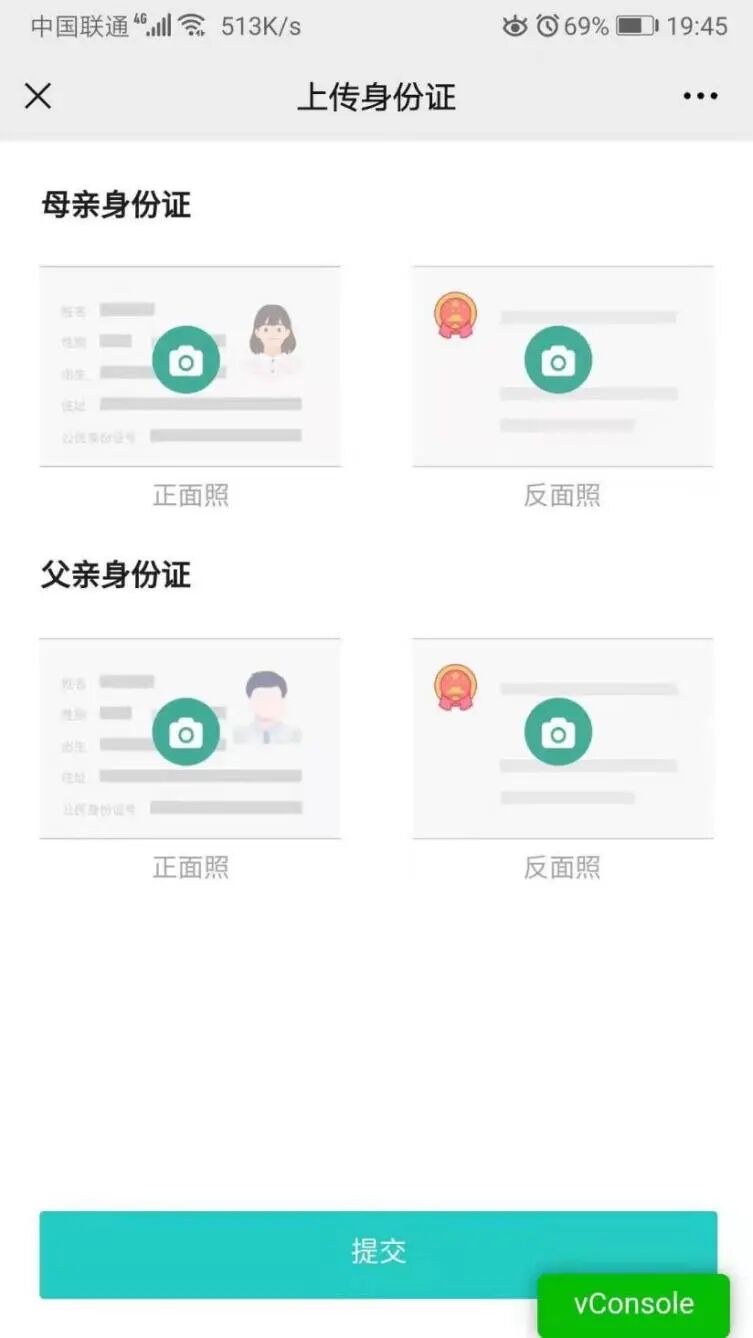七、上传母亲、父亲身份证正反面,
